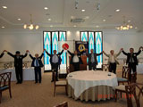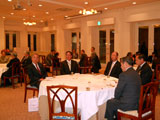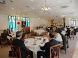 演奏が終わると、進行役はいないようで、隣席のクラブ会長Mrs.Sankerが立ち上がって、ワイングラスをナイフで小刻みに敲きます。(挨拶が始まるという合図?)