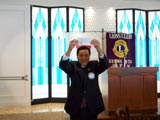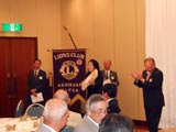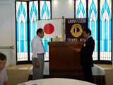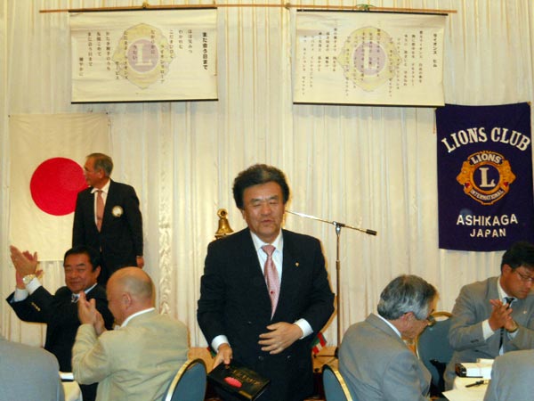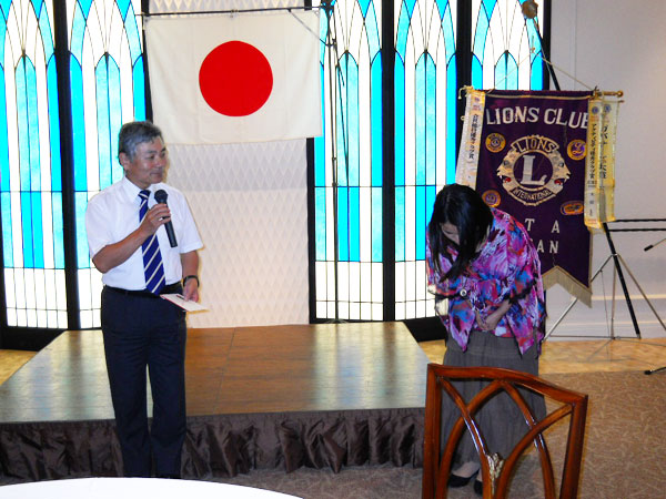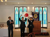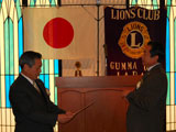 そして、新会員の紹介。会長が入会承認を読み上げ、ライオンズ襟章を着け、新会員の挨拶。