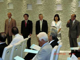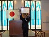 ゆっくりと、テーブル上の国旗に一礼すると、静かな会場は高島Lに注視。