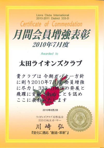 次期太田ライオンズクラブ・スローガン 「友愛・博愛・義勇のウィサーブ」