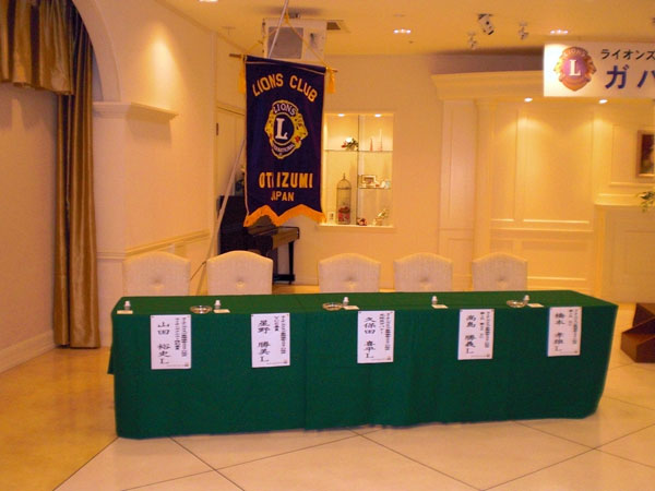 ライオンズのウェルカム旗があり、テーブルには両国国旗。