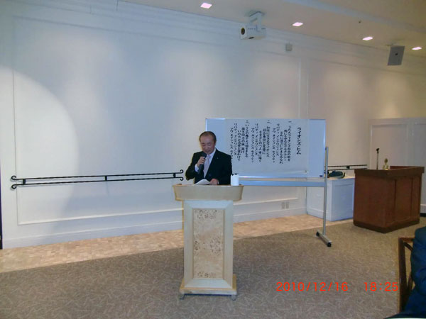 会場内が静かになり、スピーチです。(通訳はMrs.Ando)