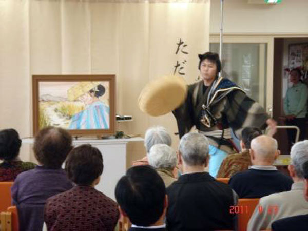 「笑いと感動を」テーマにただあき一座を招いて1時間公演の観劇をさせていただ