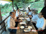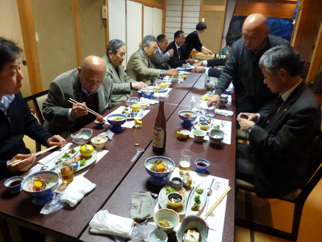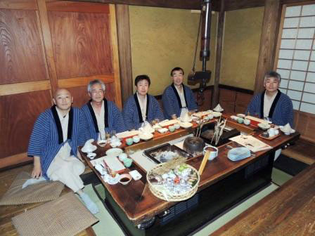 薬師温泉旅籠は、茅葺の古民家を移築した味わい深いたたずまいの宿で滝を滝見の露天風呂、ゲルマニウム鉱泉と源泉かけ流しの内風呂、更に部屋にも檜の野天風呂とメンバー相互は正に裸の付き合いが出来、美味しい料理と美味しいお酒で大変盛り上がり、今回の目的は充分果たせたと思っています。
