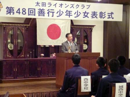 饗庭敏彦校長は、「本校創立以来、太田ライオンズクラブ様には物心両面のご支援をいただいています。