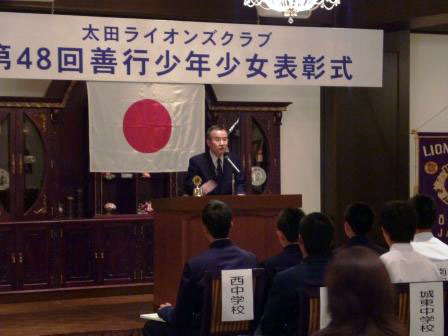 マリエール太田様にて、恒例の太田市内の中学校16校の少年少女の皆様へ表彰と記念品が贈られました。