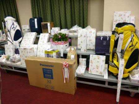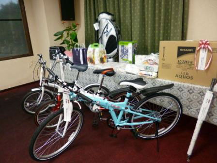 100点ほどの賞品は、次々に呼びあげられ大型液晶テレビ(3台)や折りたたみ自転車(3台)などは会場から大歓声が起こりました。