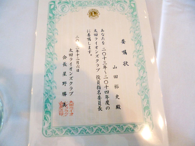 星野会長より山田裕史Lへ行われました。