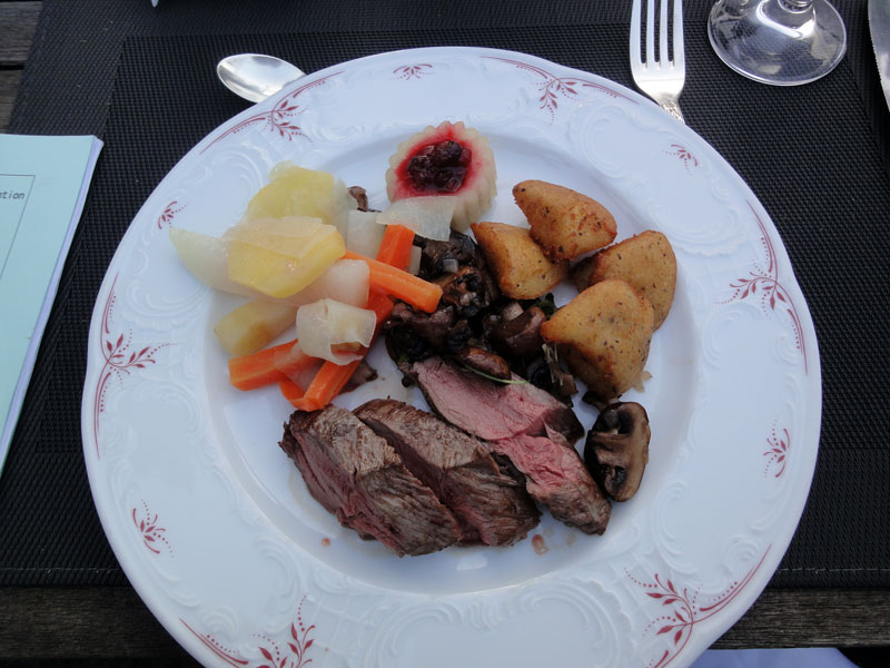 楽しい会話と、そこの森で取れた野生の鹿肉のステーキとドイツワインを堪能させていただきました。