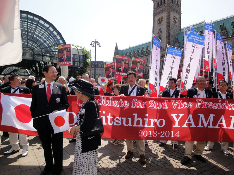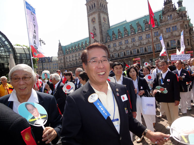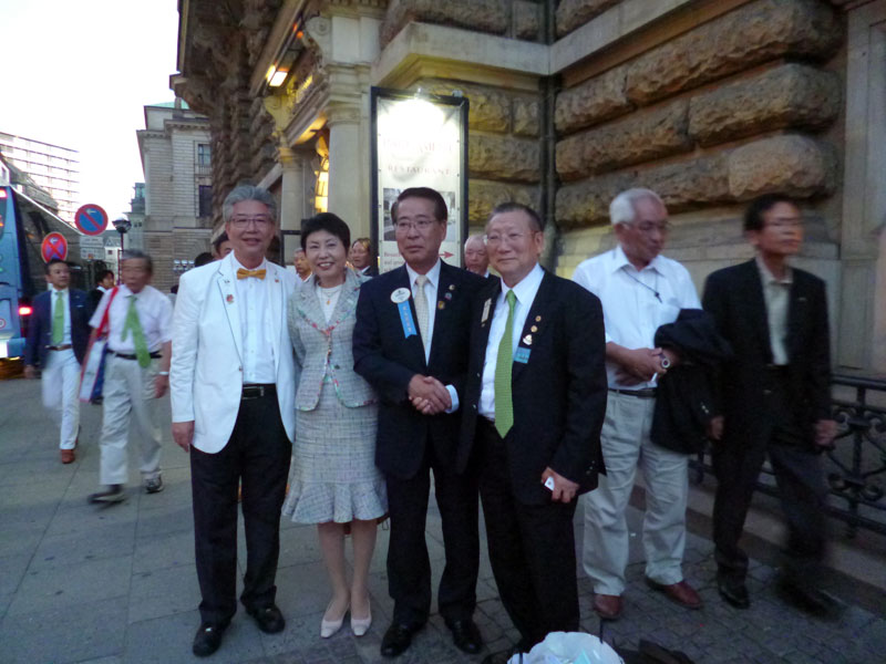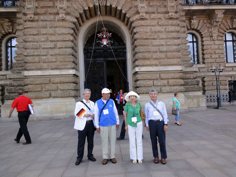 International convention of this year was held in Hamburg of Germany. We have 2 missions at the time of attending to the convention. The first one is to mix with lions club Gernsbach-Murgtal, and second one is to vote to Lion Jitsuhiro Yamada as the candidate of the 2nd international vice president. 4 lions from our lions club and 5 lions from lions club Gernsbach-Murgtal attended. Hamburg the second city of Germany is a very beautiful city with full of green and with historical and traditional buildings. When we arrived at Germany, we were welcomed at the airport by the president Mr. Vischhof, the former president Mr. Gehrke, and the former RC Mr. Doll. They took us to the hotel located at the suburbs of Hamburg by a rent-a-car. Mr. and Mrs. Fritz joined us, and they held us a welcome party at a splendid restaurant in a forest. We fully enjoyed cheerful conversation, wild deer meet(venison) taken in the this forest, and German wine. Next morning we saw the international parade together around lake BinnenAlster where was the most beautiful place in Hamburg. Japanese team abounded with participants so it seemed a magnificent view. It was a hot day. We had a lunch at a restaurant near the city center the starting point and had a pleasant time. In the afternoon we visited famous churches together. We met lions friends of the same district at a church. In the evening we went to “international show”. We heard that Up-with-people was famous singers internationally. Since their songs were almost in English, we Japanese were not so familiar (in this connection Mr. Fritz knew more than half). Next day we were invited to city sightseeing bus and Hamburg bay cruise. Because they had to work from Monday, they separated from us and returned for their home town (Baden Baden) after lunch. We thanked them very much for a good time. After that time we enjoyed adventurous trip of north Germany by ourselves. During stays we were invited a dinner party by the governor (333-D) Mr. Nomura and had a good time. Furthermore we voted for the international second vice president. We could make a lot of nice remembrance of contact with German, so that North Germany Trip proved very fruitful.
