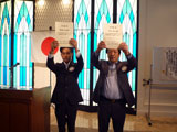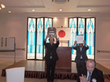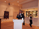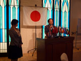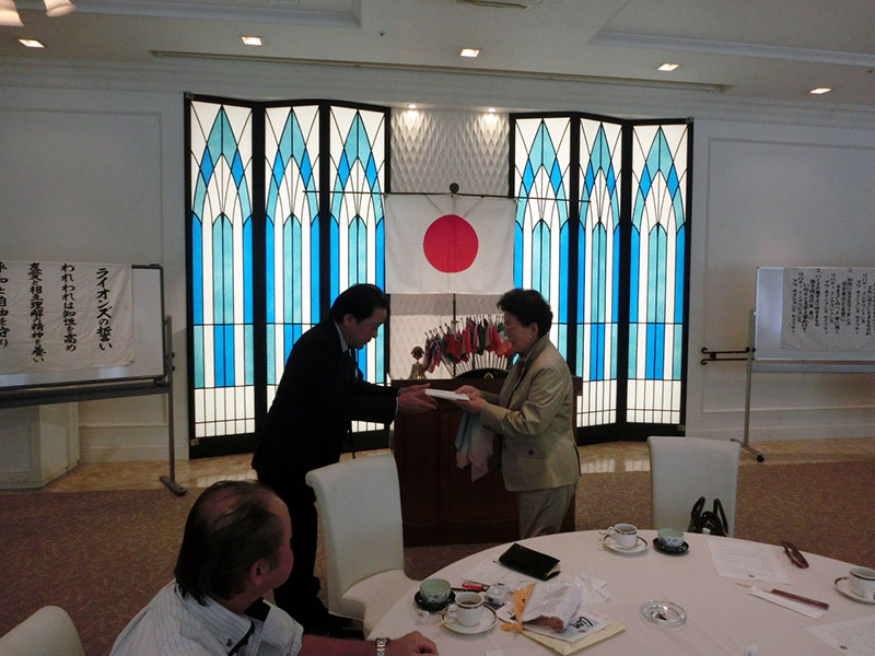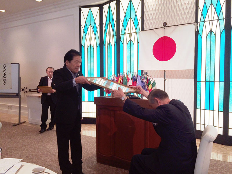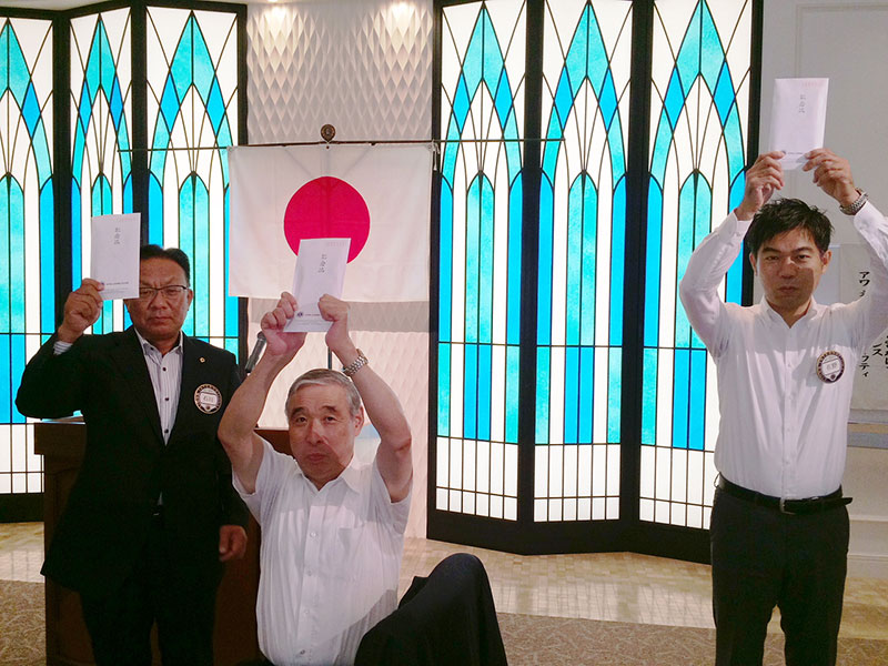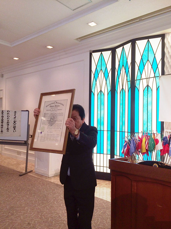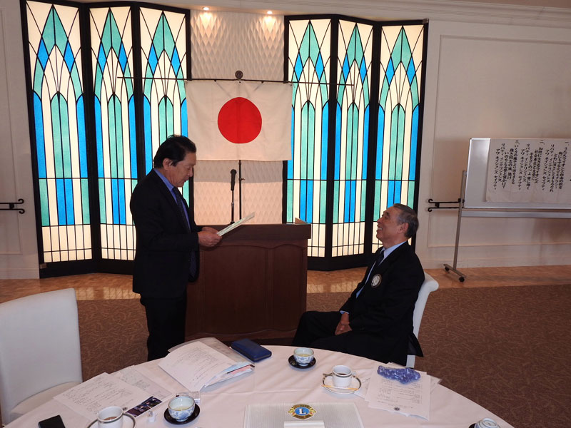 まずは国際協会からの認証状伝達式です。認証状を前会長である川村Lから黒田Lが引継ぎ、晴れて黒田新会長の誕生です。