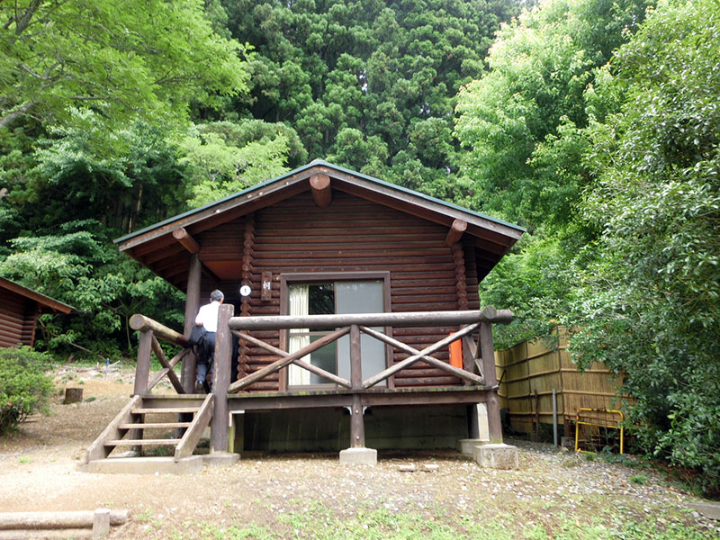場所は、佐野市田沼町の蓬山ログビレッジでバンガローに宿泊しました。