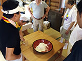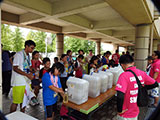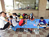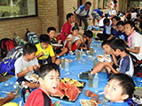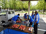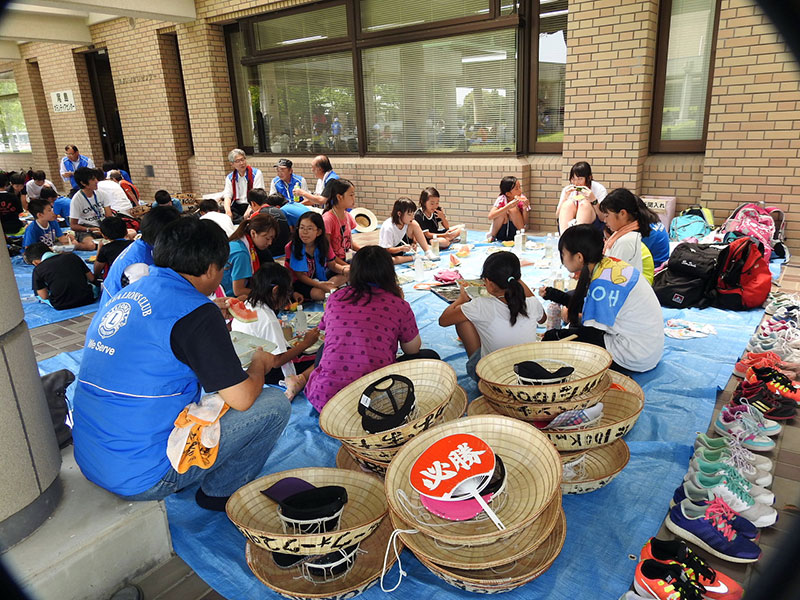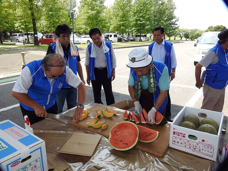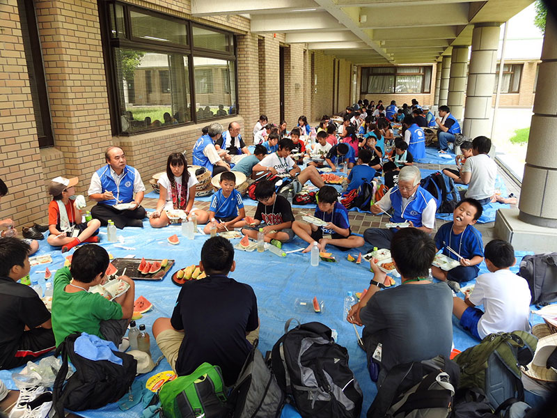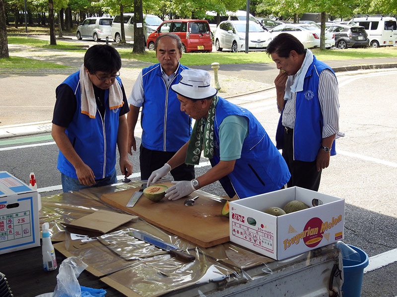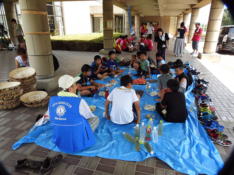 我々太田ライオンズクラブのメンバーは、早速スイカ・メロンを配り、各班の子供たちと一緒にお弁当を頂きつつ労をねぎらいます。