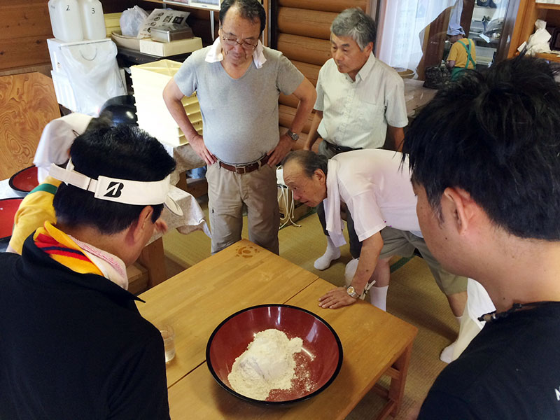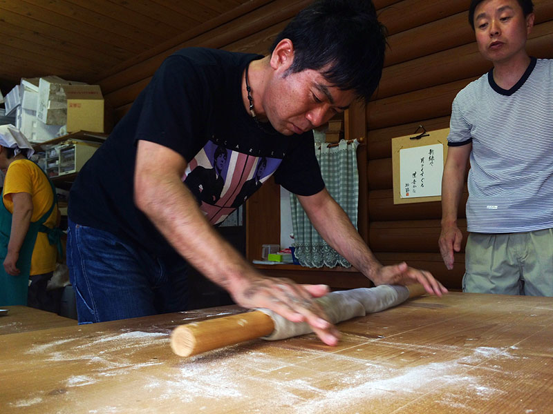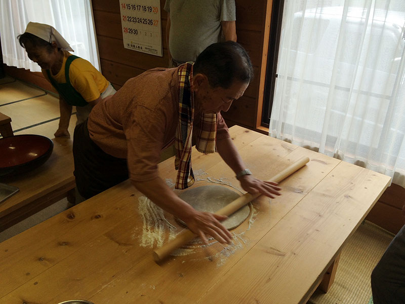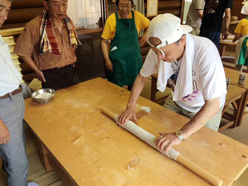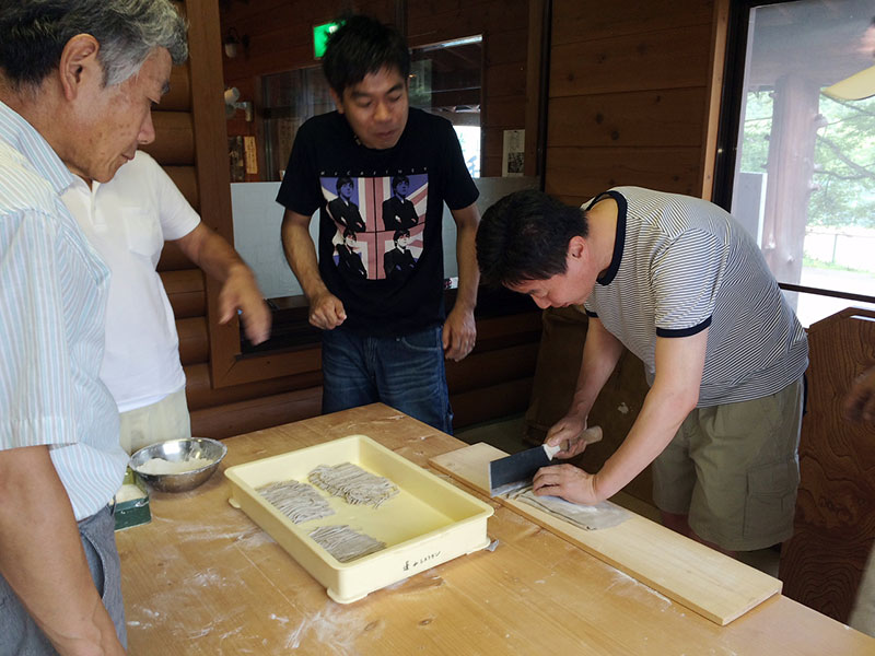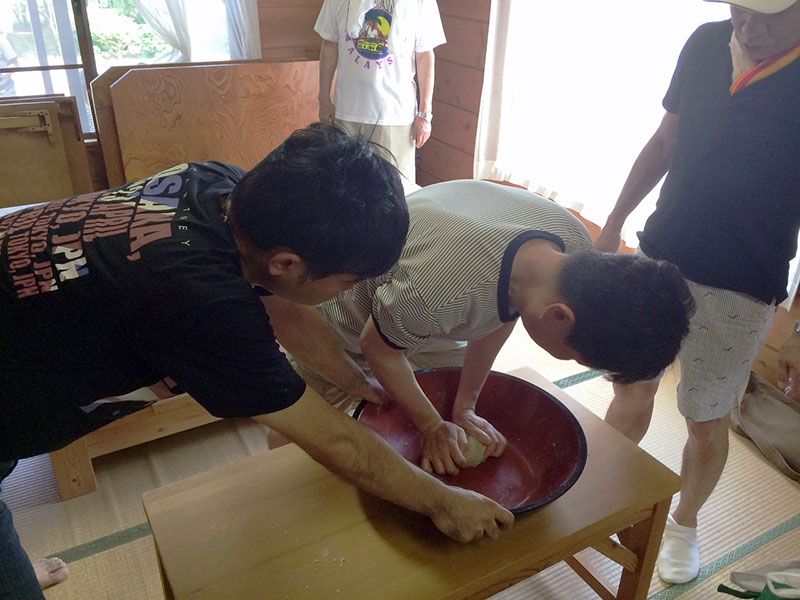 昼は蕎麦打ち体験。自分たちで打った蕎麦に舌鼓。