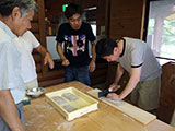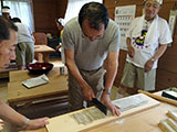 まずは欄間彫刻で有名な「井波彫刻総合会館」を訪れ、メンバーは匠な名工の作品に目を奪われていました。