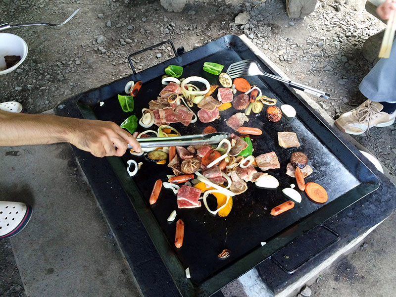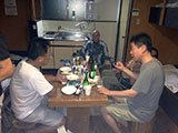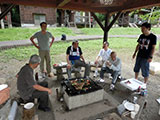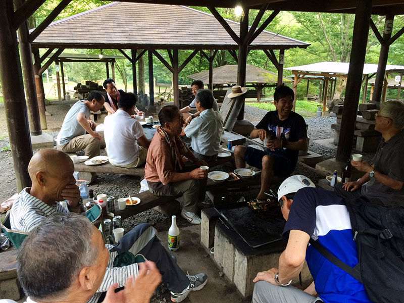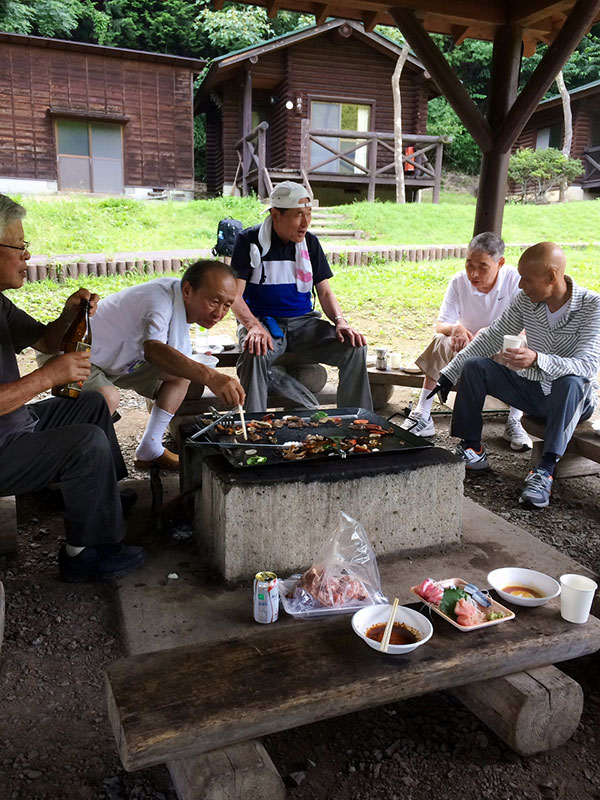 夕方からはバーベキューと酒盛りです。和気藹々と盛り上がり、それぞれのバンガローでも夜遅くまで盛り上がっていました。