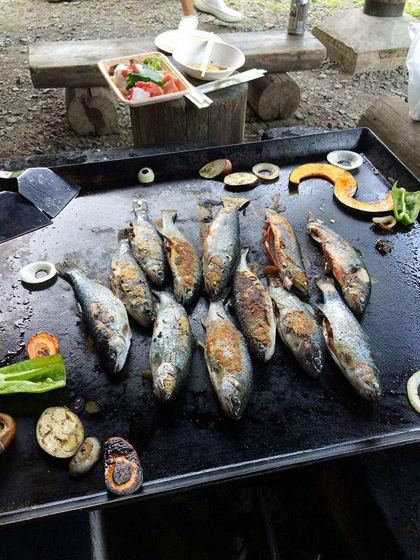 午後は釣り!マスやイワナを沢山釣上げました。(食べきれないって!!)