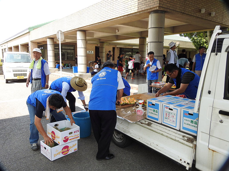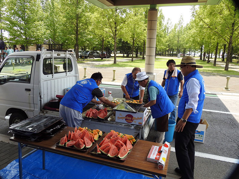 8月第1例会は、尾島庁舎にて太田ライオンズクラブが協賛する、太田青年会議所主催の「おおた100kアドベンチャウォーク」支援活動として、昼食の対応とスイカ・メロンの差し入れを行いました。