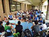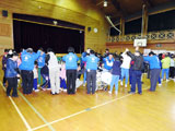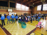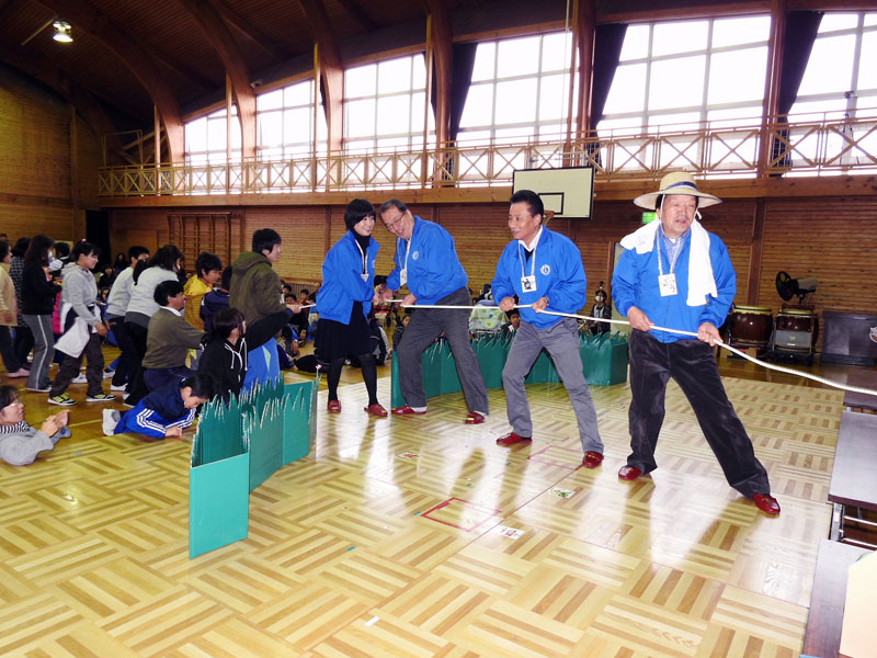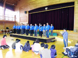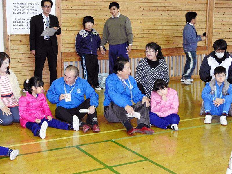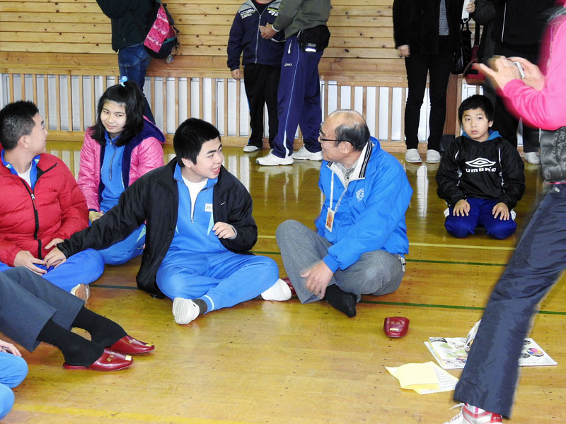 会場入りです。校長先生からご紹介を受け、各グループに分かれて子供たちと話をしたり、レクレーションを一緒にする等のふれあいを楽しみます。