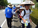 8月5日にスタートして3日目の今日は、行程の半分。既に50kmを徒歩で歩き、子供たちは真っ黒に日焼けして元気一杯です。