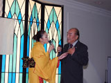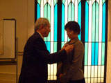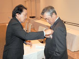 会長挨拶に続き、MJFメルビン・ジョーンズフェロー(1,000$基金の感謝状)の伝達式並びにマイルストーン・シェブロン(永年在籍ライオンマン賞)の伝達式が行われました。