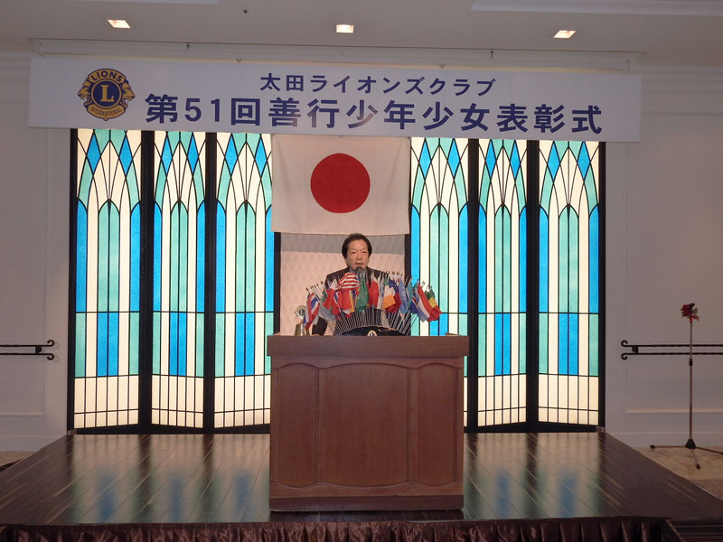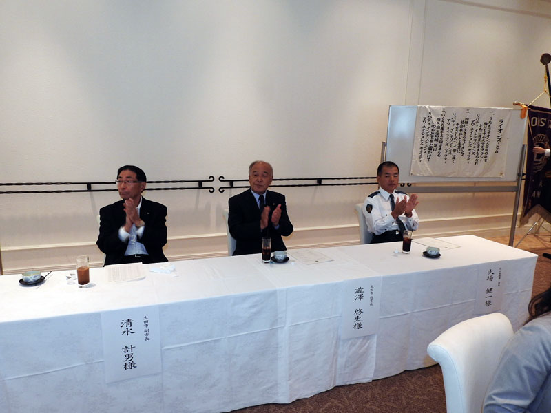 司会者より、太田ライオンズクラブのチャーターメンバーである小林利夫Lが、6月30日にご逝去された事が伝えられ、小林利夫L並びに全世界の物故Lに対して黙祷を捧げました。