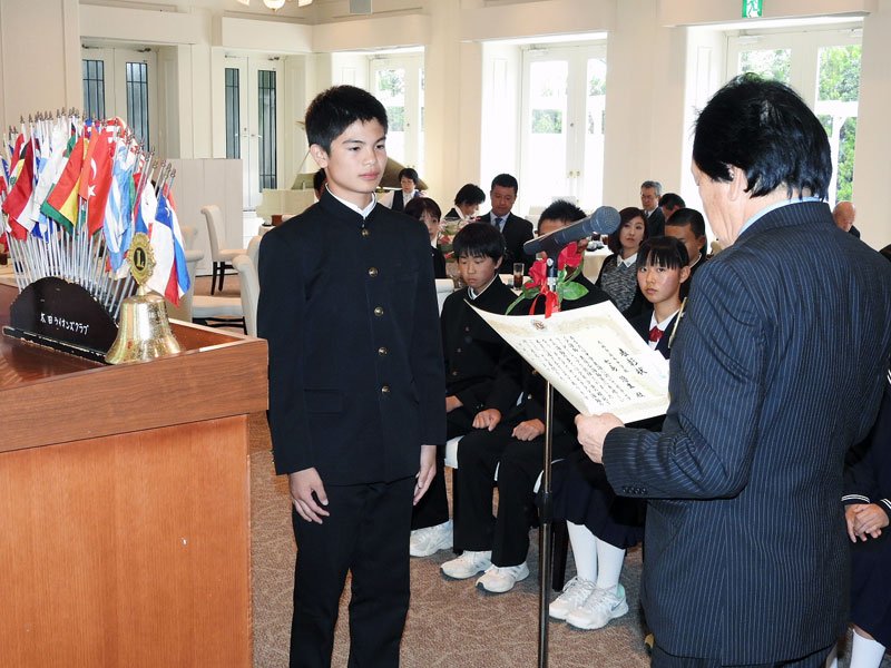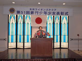 まずは善行少年表彰式。今年で51回目を迎える太田ライオンズクラブの継続アクティビティです。今回も太田市副市長の清水計男様を初め、澁澤教育長・大場太田警察署長をご来賓にお迎えしての式典となりました。太田市内の17の中学校から推薦された17名の生徒さんがそれぞれの善行を讃え表彰状と記念品が贈られました。受賞された生徒の皆さんの誇らしい記念写真です。引率されたご父兄や先生方も笑顔でご覧になっていました。