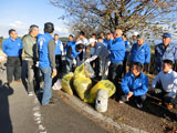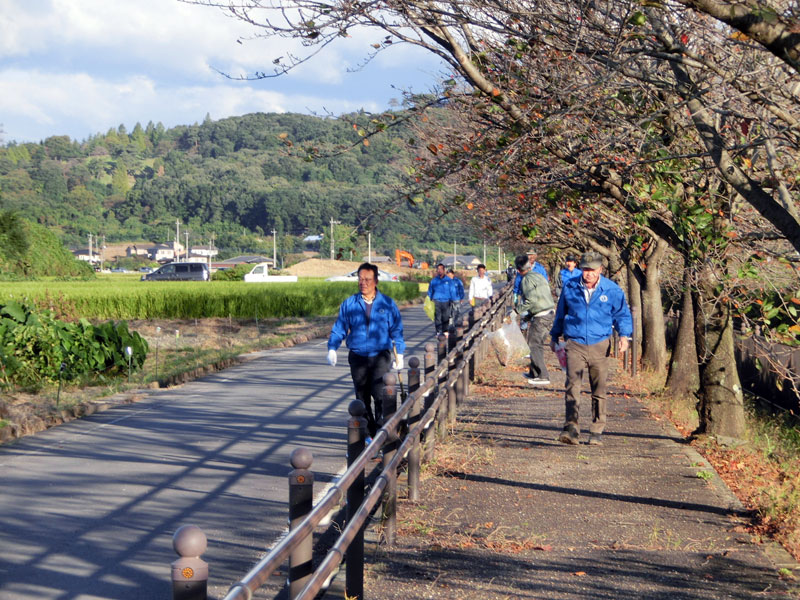 早朝より多くのメンバーが集まり、軍手を嵌めてビニール袋を手に約1.5kmある桜並木を端から端まで丁寧にごみを拾い集めました。
