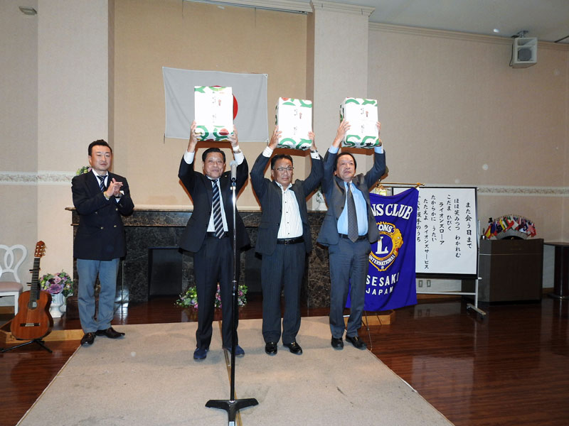 次は前3役へ1年間の労をねぎらい、記念品の贈呈が行われました。川村前会長、佐野前幹事、石川前会計、1年間お疲れ様でした。
