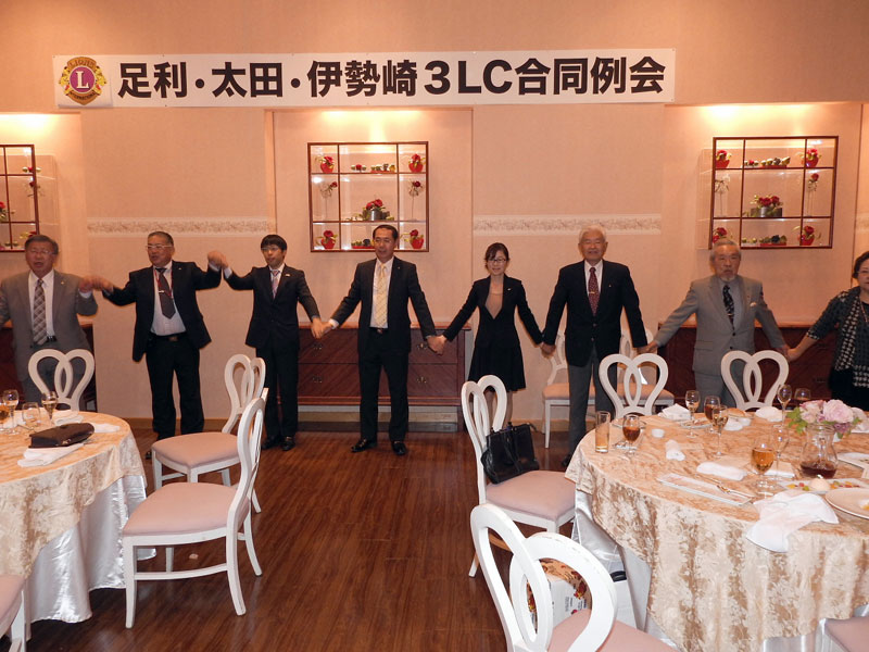 11月の第1例会は、伊勢崎プリオパレスにて恒例の3ライオンズクラブ合同ナイター例会です。ホストクラブは兄弟クラブである伊勢崎ライオンズクラブが努めて下さり、親クラブであります足利ライオンズクラブと太田ライオンズクラブの3クラブのメンバー同士が懇親を深める場であります。