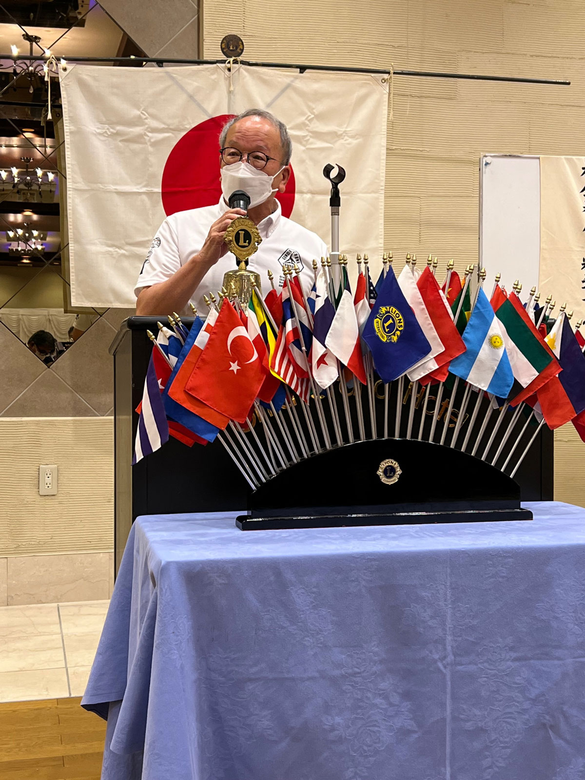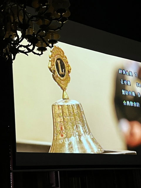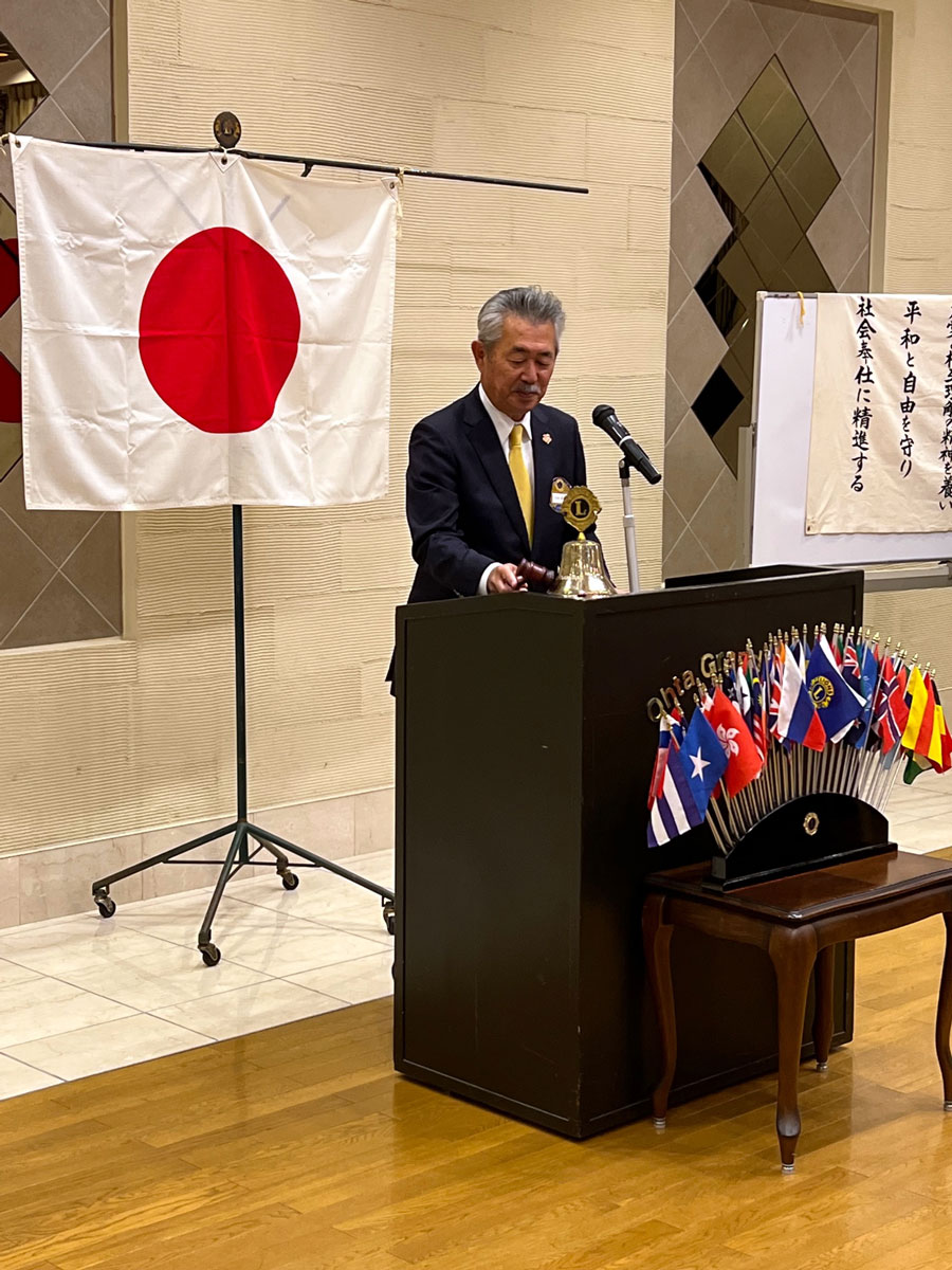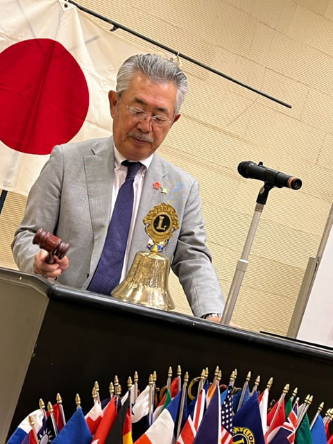 新会長の大谷幸義Lのゴングが鳴り響く中、大谷会長のスローガン「温故知新」活動テーマ「一隅を照らす」