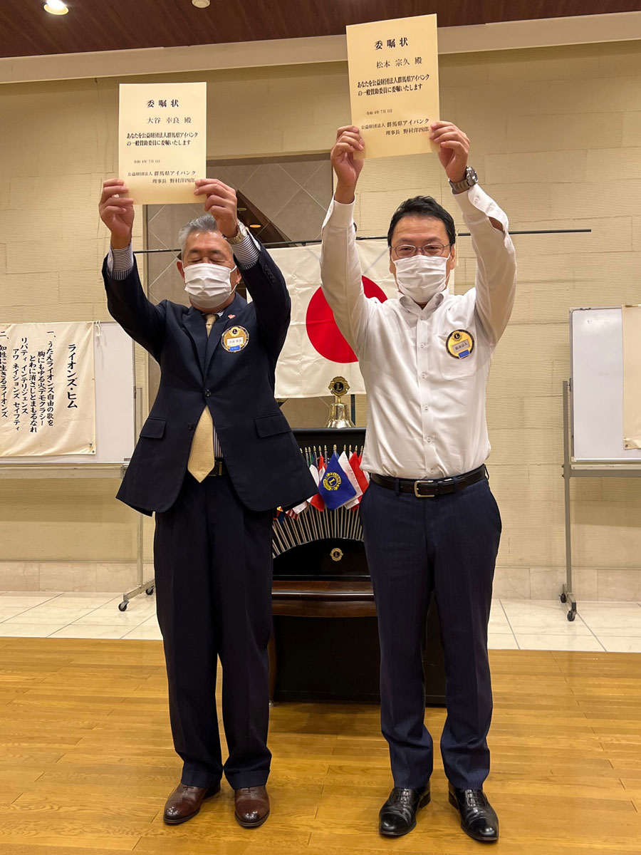 公益財団法人群馬県アイバンクより理事であります黒田雪久Lより大谷幸良L・松本宗久Lに委嘱状が