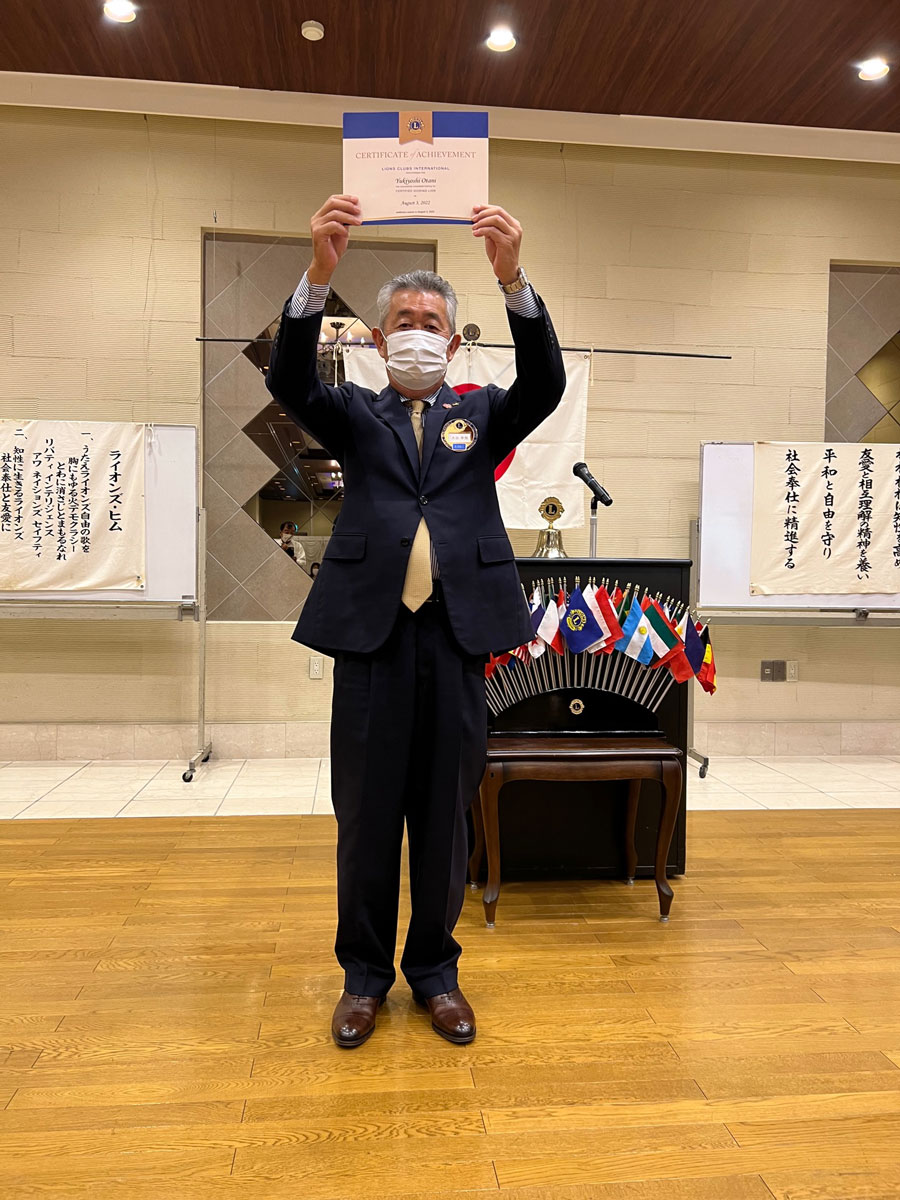 国際協会より「公認ガイディング・ライオン認定書」が大谷幸良L