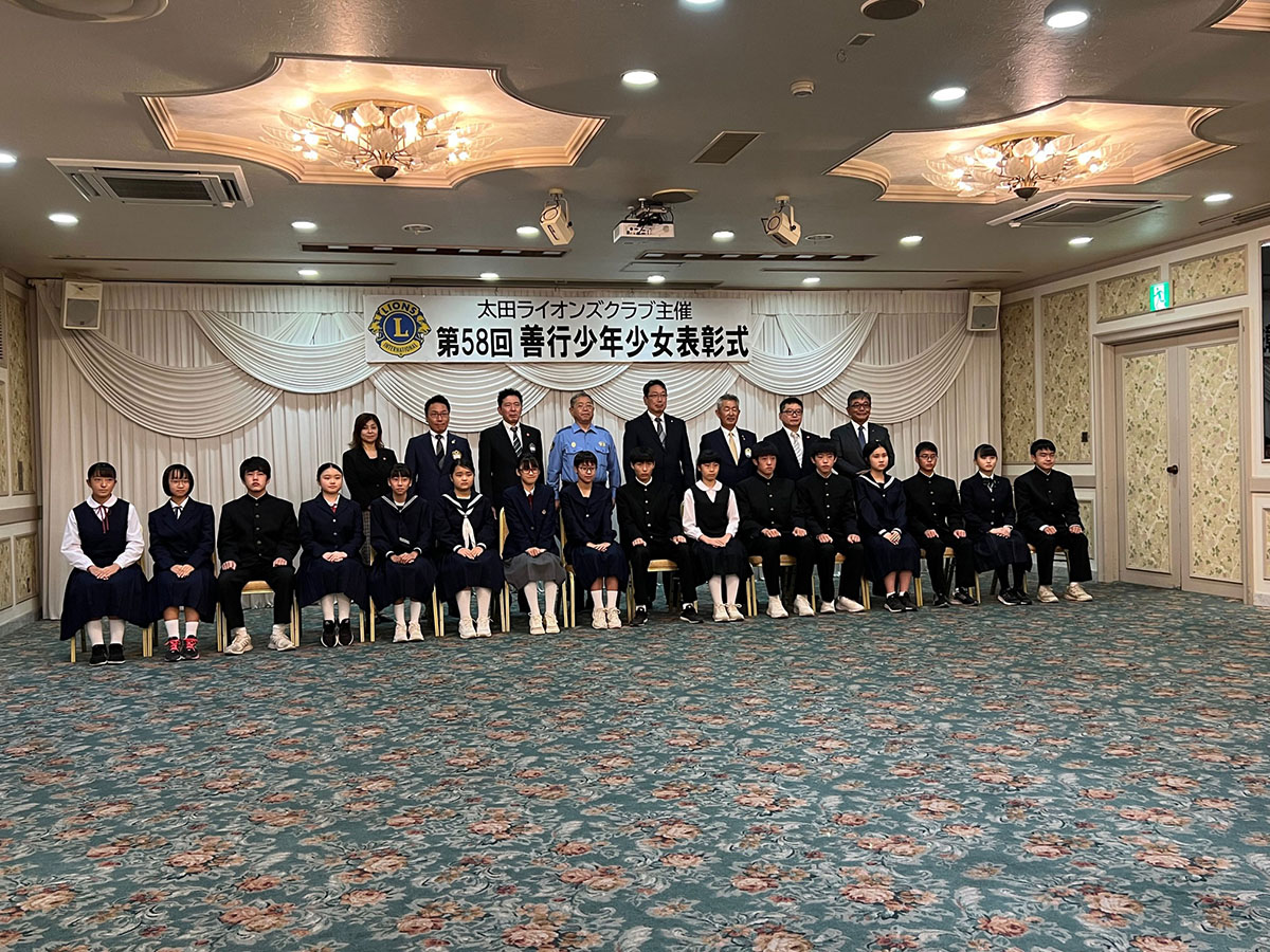 本日は太田ライオンズクラブ最長のアクテビティ善行少年少女表彰式が行われ