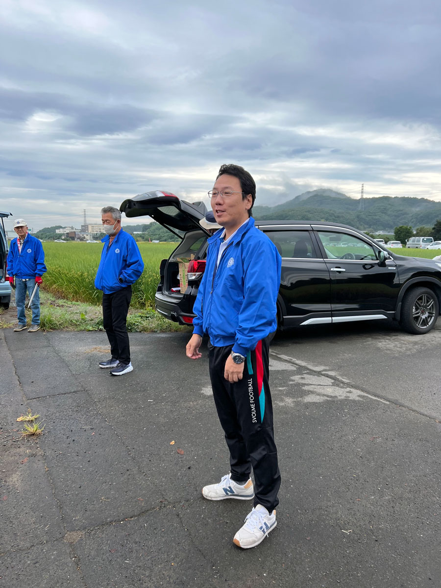 鶴生田桜並木の清掃が朝7時より第三副会松本副会長の元、環境奉仕委員会主催による