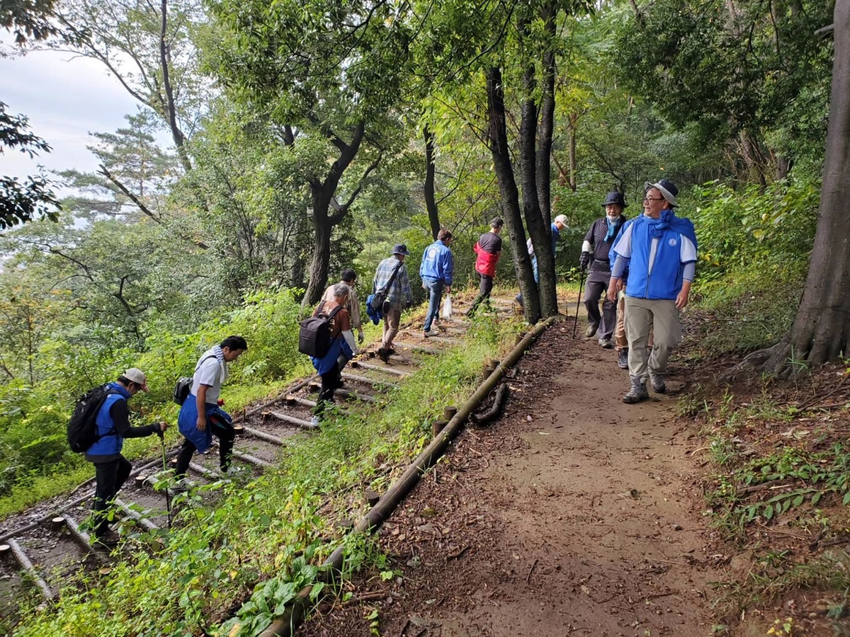 また本日は清掃活動の後大川陽一Lのご提案で「金山遊歩道散策」が行われました。