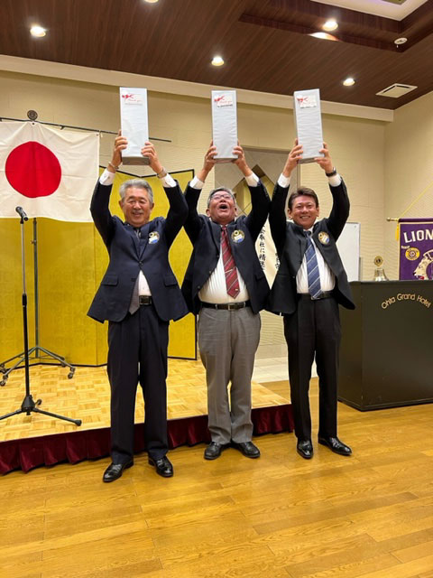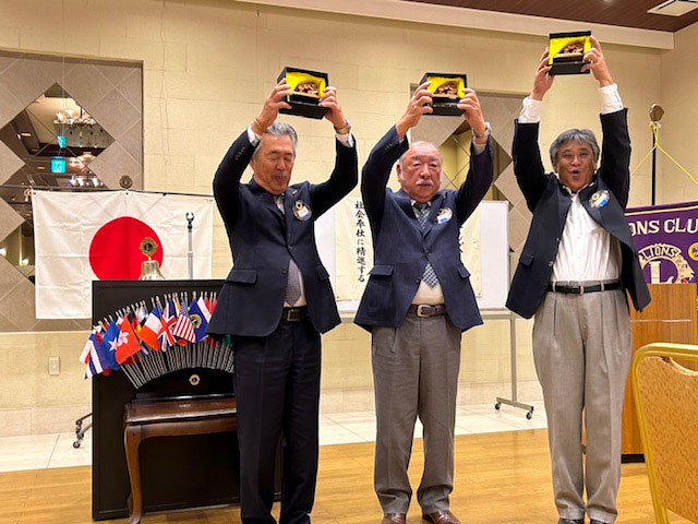 LCIFキャンペーン100のアワード受賞の伝達 宮下宗久L・吉川彰光L・清田公志Lの3名が授与いたしました。