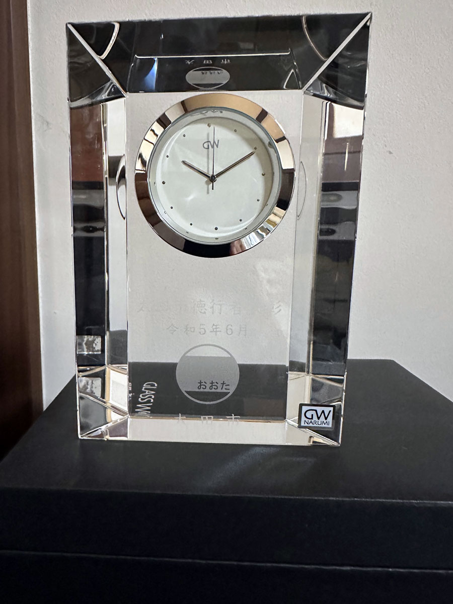 市長からの感謝の言葉とともに太田は子供たちのため、若い人のため、人が集まる市にして行きたいという話とともに表彰を受けました。